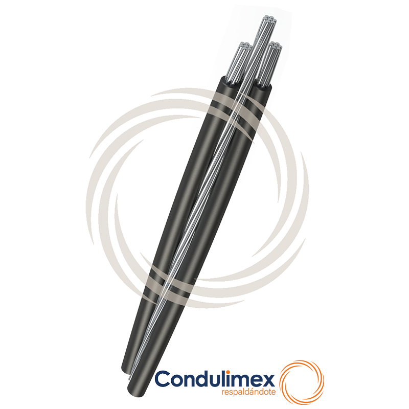 Cable formado por uno o más conductores de aluminio o cobre aislados individualmente con polietileno de alta densidad dispuestos helicoidalmente alrededor de un conductor de soporte desnudo de cobre o aluminio.
